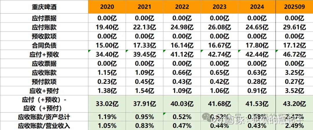主要以预提费用、各种押金保证金组成,这部分应该也算是公司无偿占用的资金。感觉啤酒企业财务杠杆玩的也是很极限,如果没有这么多无偿占用现金流,公司自身现金可能都不够用。