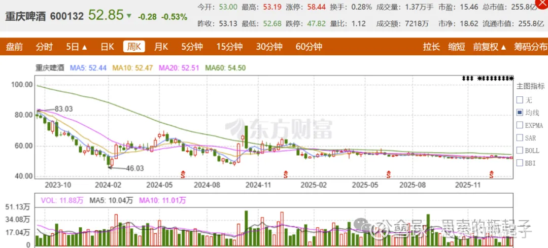 在50元上下的位置,重庆啤酒已经窄幅震荡了2年多时间,我也想知道,这个位置是否是公司一个长期的底部区域。下面进入分析环节。
