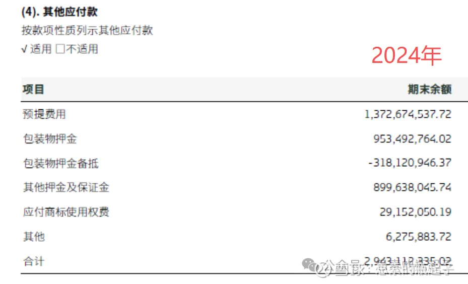 另外公司负债中还有一大项,叫做其他应付款,是指与企业的主营业务没有直接关系的应付、暂收其他单位或个人的款项,2024年金额高达29亿。