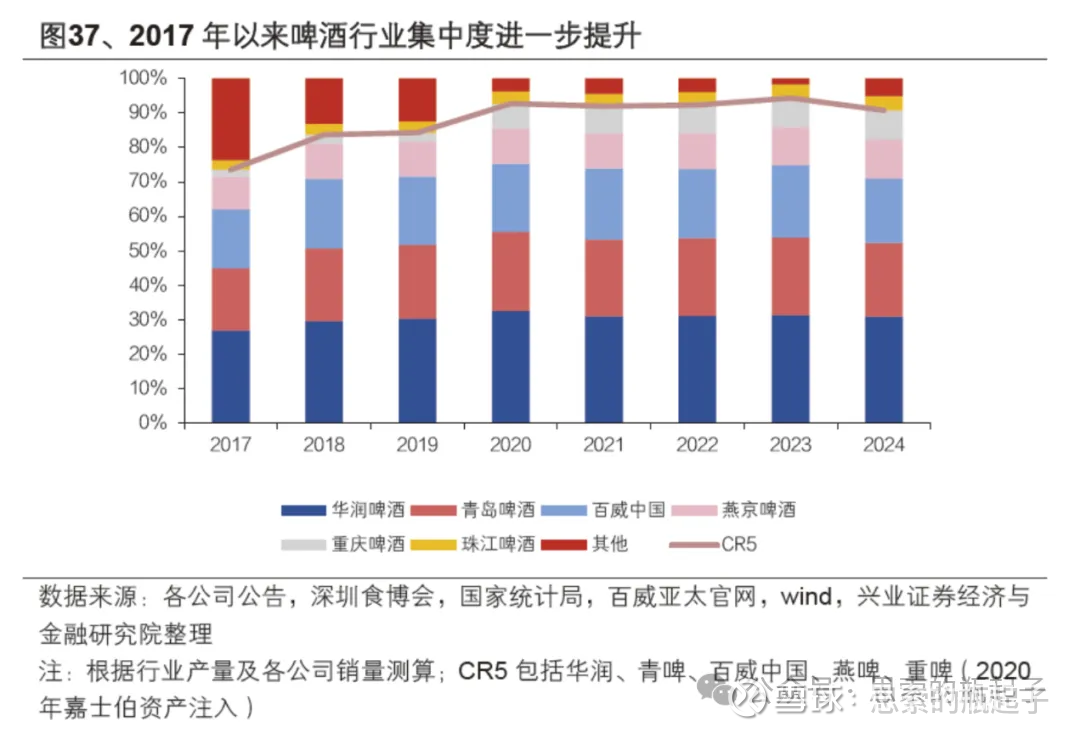 所以目前的情况是,自2024年以后,随着产量稳定+价格缓慢上涨,啤酒行业大致可以维持一个3%左右的低速成长。