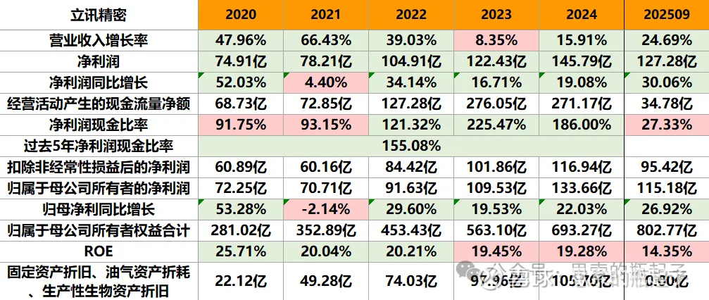 立讯精密的营收增长和净利润增长,一直比较高,在这么大规模基础上还能有两位数增长,说明它在代工领域,确实有核心竞争力。