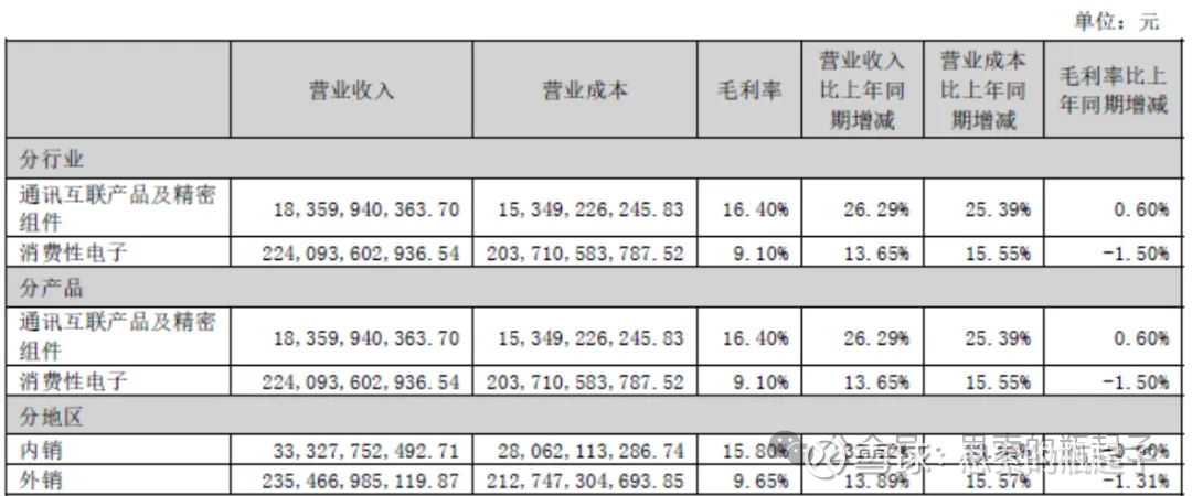 立讯也算是少有的,外销业务毛利率远远低于内销的企业,毕竟一般企业都是出海的产品更赚钱。