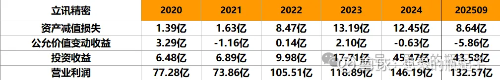 公司每年会有大约10亿左右的资产减值损失,以及超过40亿的投资收益,另外汇率的变化,也会影响公司的公允价值变动收益,毕竟海外产能越来越多。