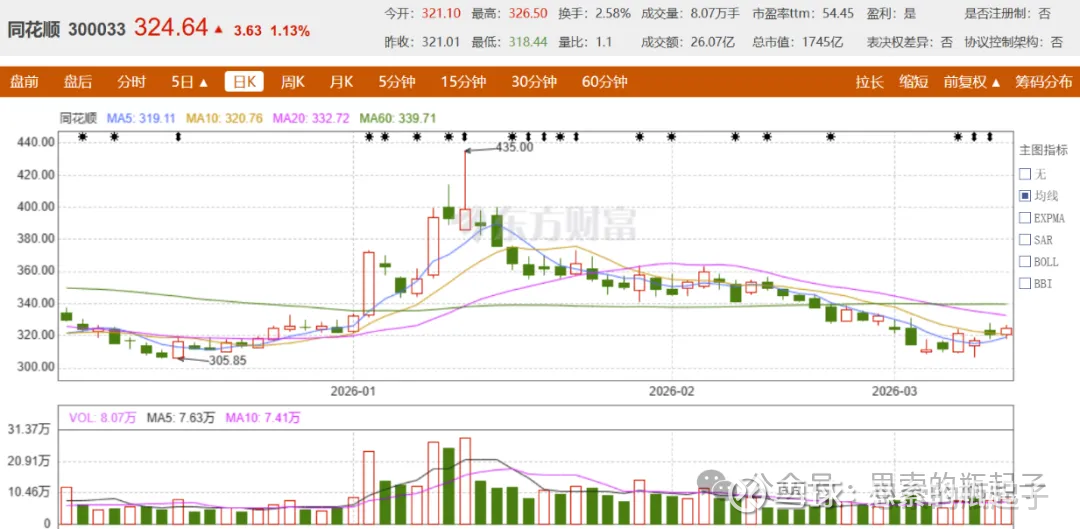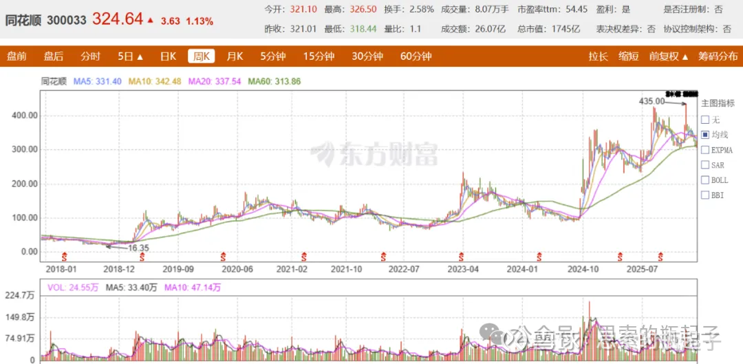 本轮行情我肯定不会再买同花顺了,这话我1年多以前就说过了,事实证明它确实也没咋涨。