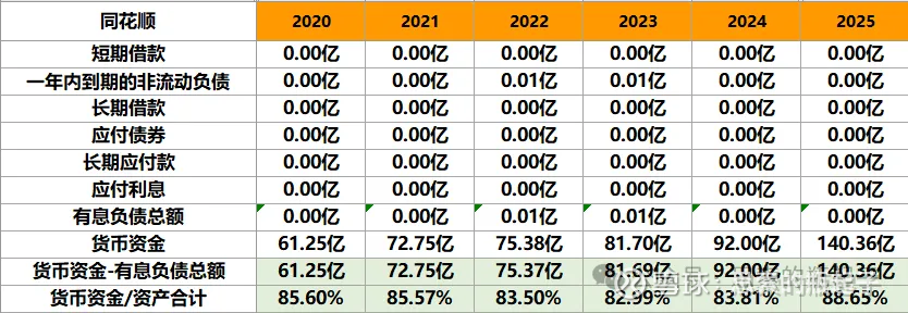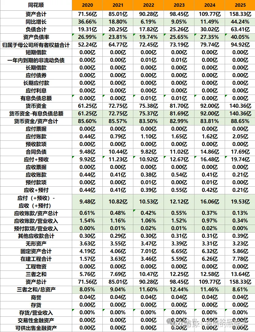 资产端,除了有一点无形资产、固定资产和在建工程外,同花顺的资产都是以现金的形式而存在,这就是一家除了钱还是钱的公司。并且商誉极低,存货为零,所以卖代码真是一门顶好的生意。