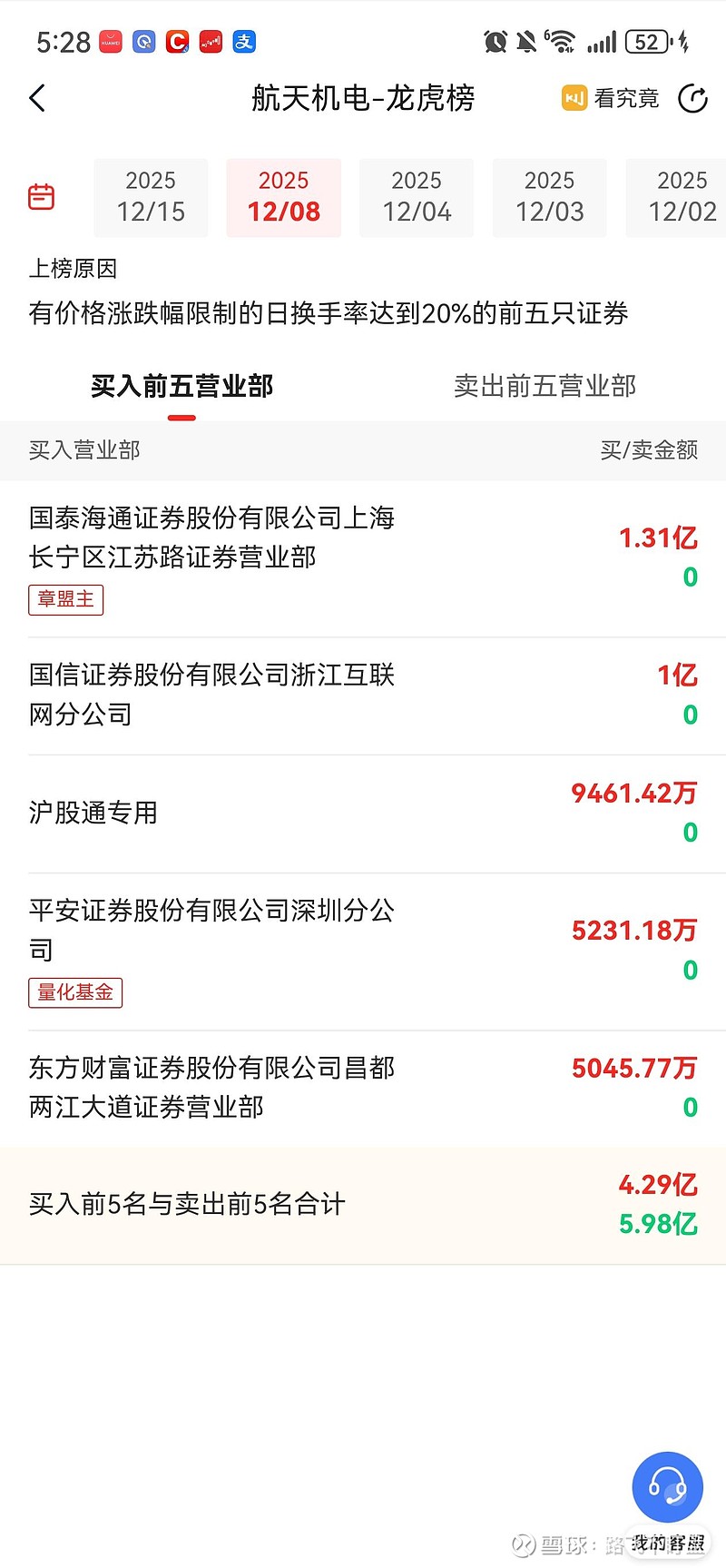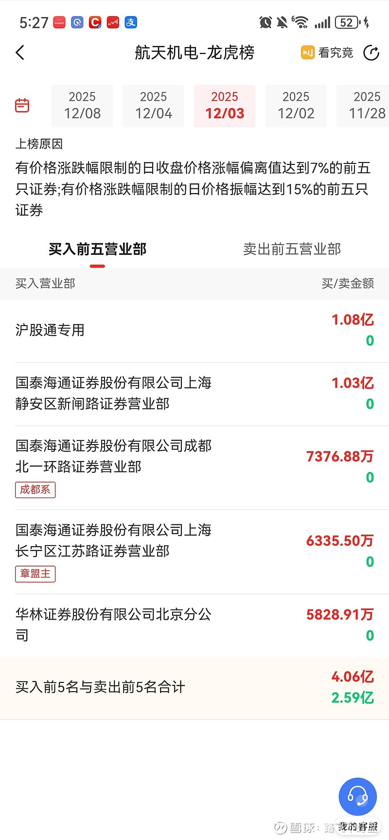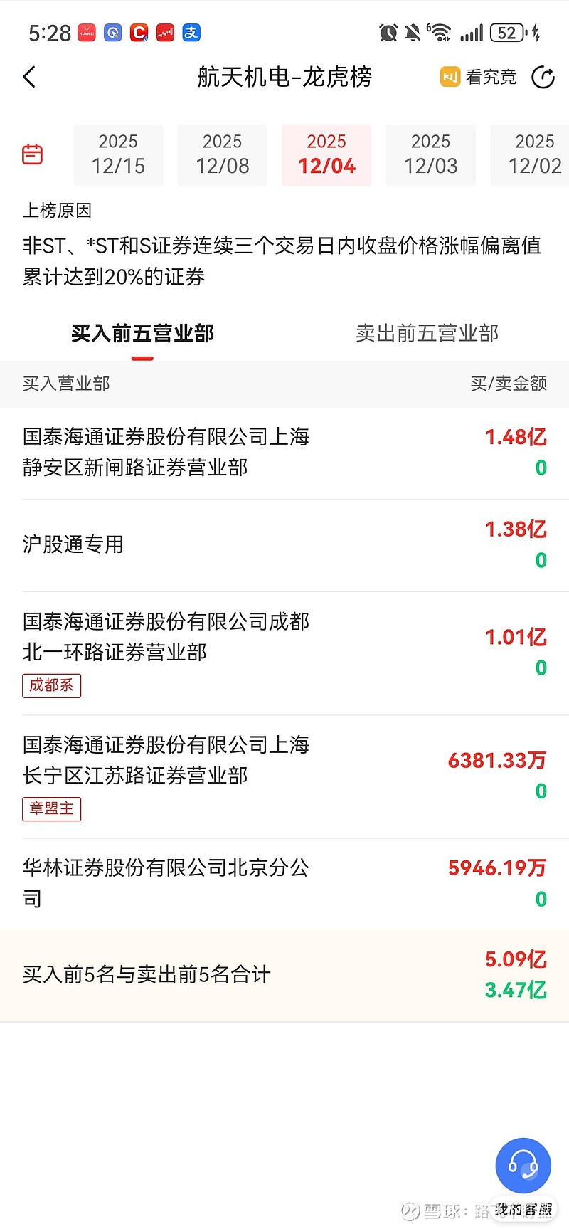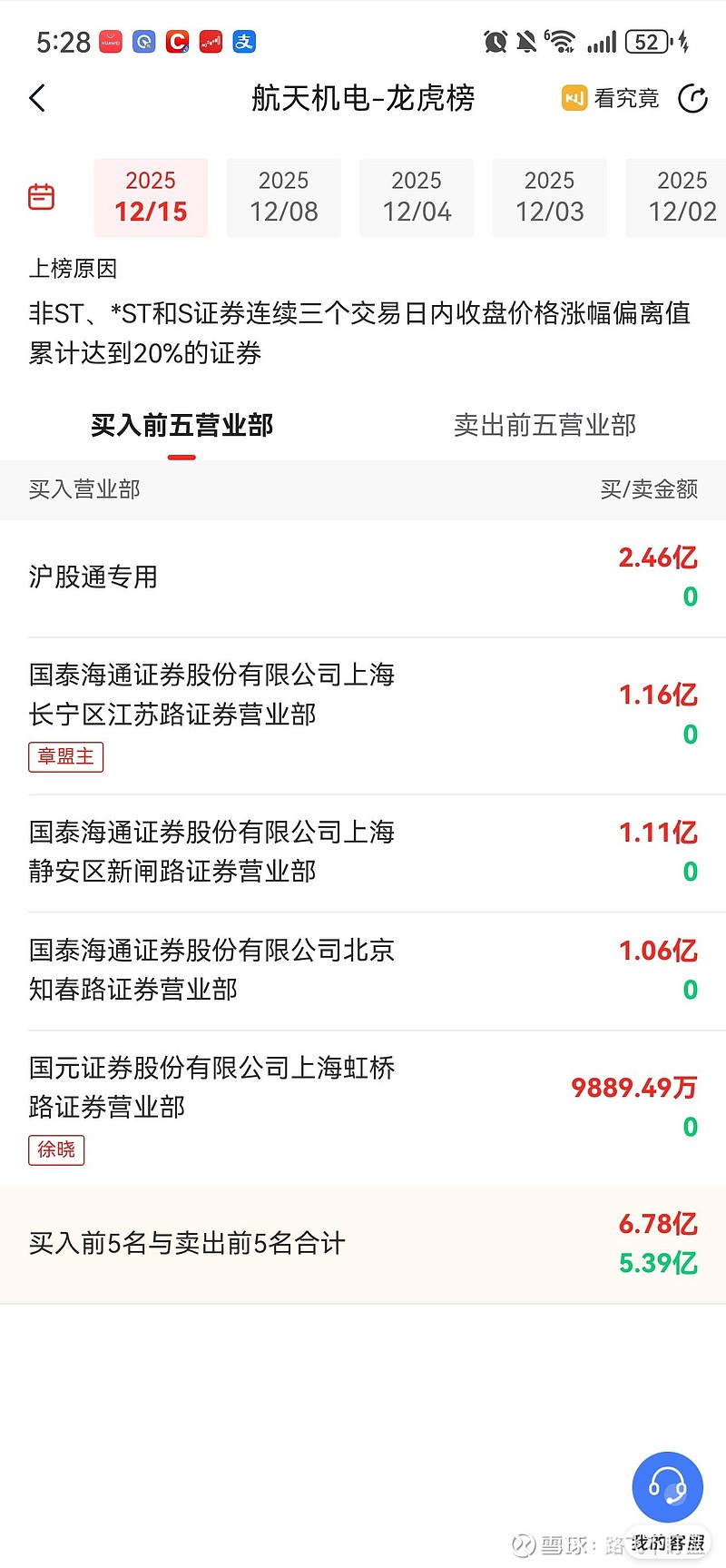 顶级游资章盟主,今天又大幅买入了航天机电,他从12月3号开始买入,持续4个交易日大幅买入,看来盟主是很看好航天机电。
