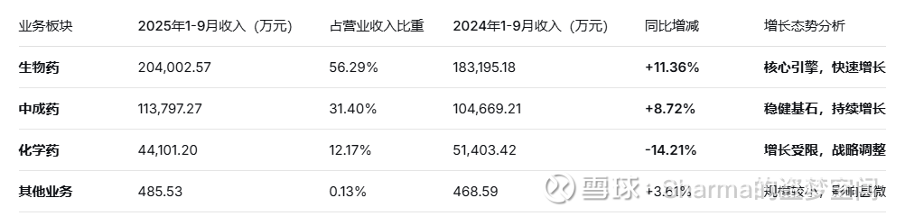 下滑原因:这可能与行业整体环境相关,包括仿制药集采常态化带来的价格压力,以及公司可能进行的业务结构主动调整,将资源更多向创新生物药和中成药倾斜。