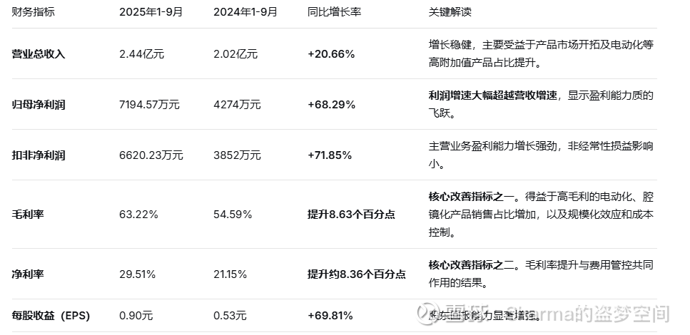 下表清晰地展示了公司2025年前三季度与上年同期的关键财务指标对比: