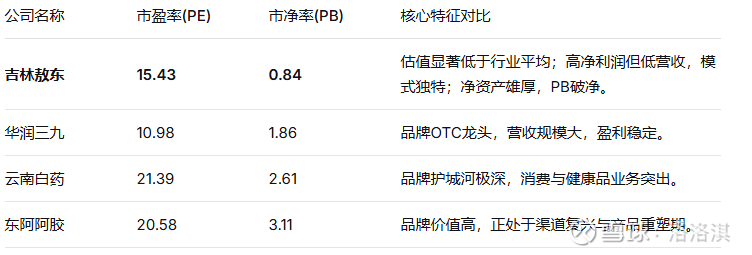 与A股主要中药上市公司相比,吉林敖东呈现出显著的估值差异和独特的竞争力模型。