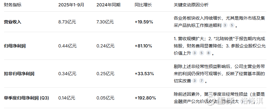 公司2025年前三季度业绩延续了上半年的增长势头,整体呈现“营收稳健增长、净利润因多重因素大幅跃升”的特点。