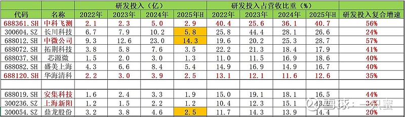 半导体设备与电子化学品最舍得投入研发的几家公司