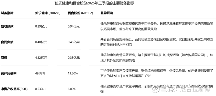 仙乐健康:进取的行业龙头仙乐健康的财务特征显示出其作为行业龙头的进取姿态。较高的应收账款和资产负债率表明它可能通过更积极的信用政策扩张市场,并利用财务杠杆加速发展 。同时,较大的商誉是其通过并购实现全球化布局的结果 。其领先的净资产收益率也印证了这种扩张策略在一定程度上的有效性 。但同时,这也带来了相应的风险,需要关注其应收账款的回收情况和整体的债务压力。