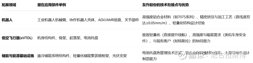 友升股份在汽车门槛梁国内市占率超过60%,因为其在铝合金抗撞击工艺上有出色之处,所以在汽车铝合金防撞精密件上优势突出。这将为其向机器人、低空飞行器等新兴领域拓展提供了很强的竞争力。