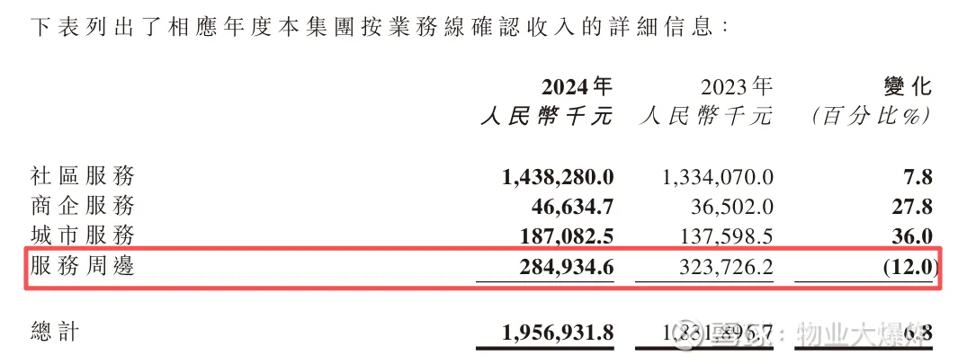 社区服务和商企服务是原来物管服务拆分而来;非业主增值服务和社区增值服务合并为“服务周边”。