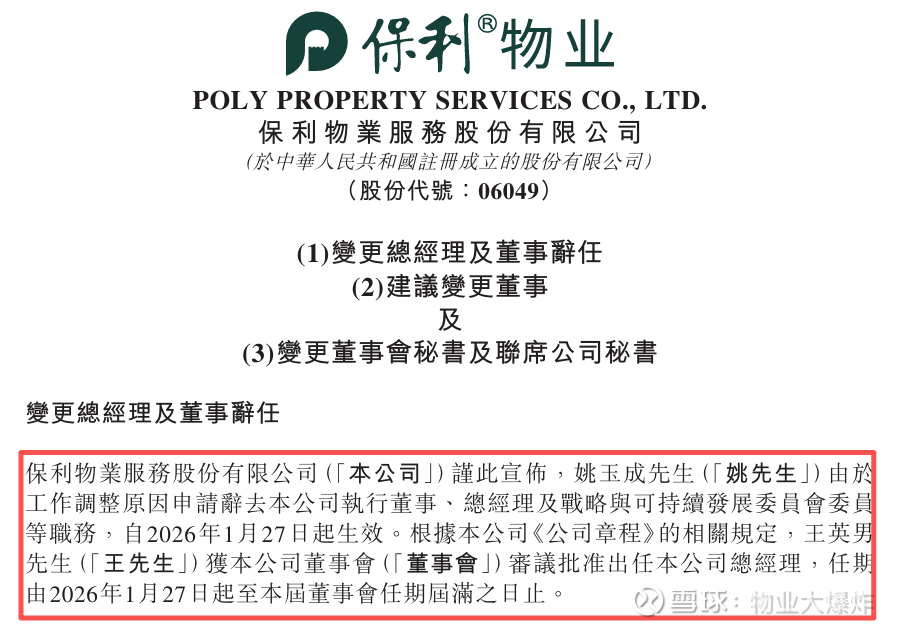 1月27日,保利物业公告: