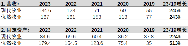 从固定资产来看,优然牧业增长高达513%,远超现代牧业的224%。