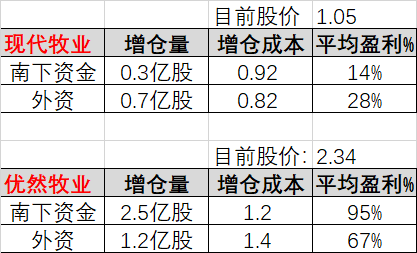 现代牧业不同,南下和外资增持幅度很少,且重点是近期才开始增持!