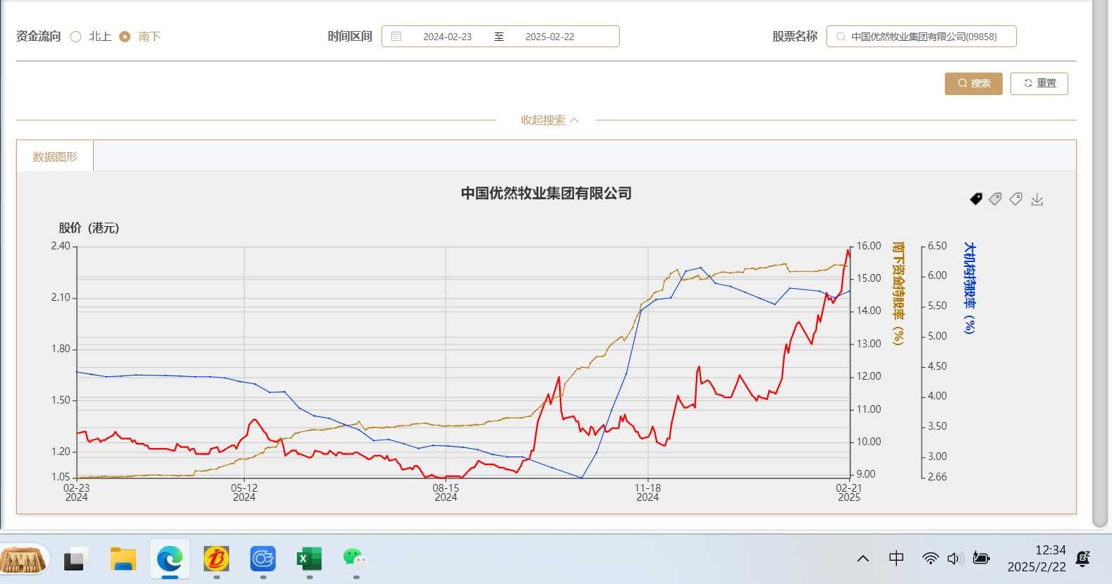 可见南下资金及外资账户在过去一年都大幅增持了优然牧业。不过其增持基本上在去年12月中旬开始停止,外资甚至还有小幅流出了!