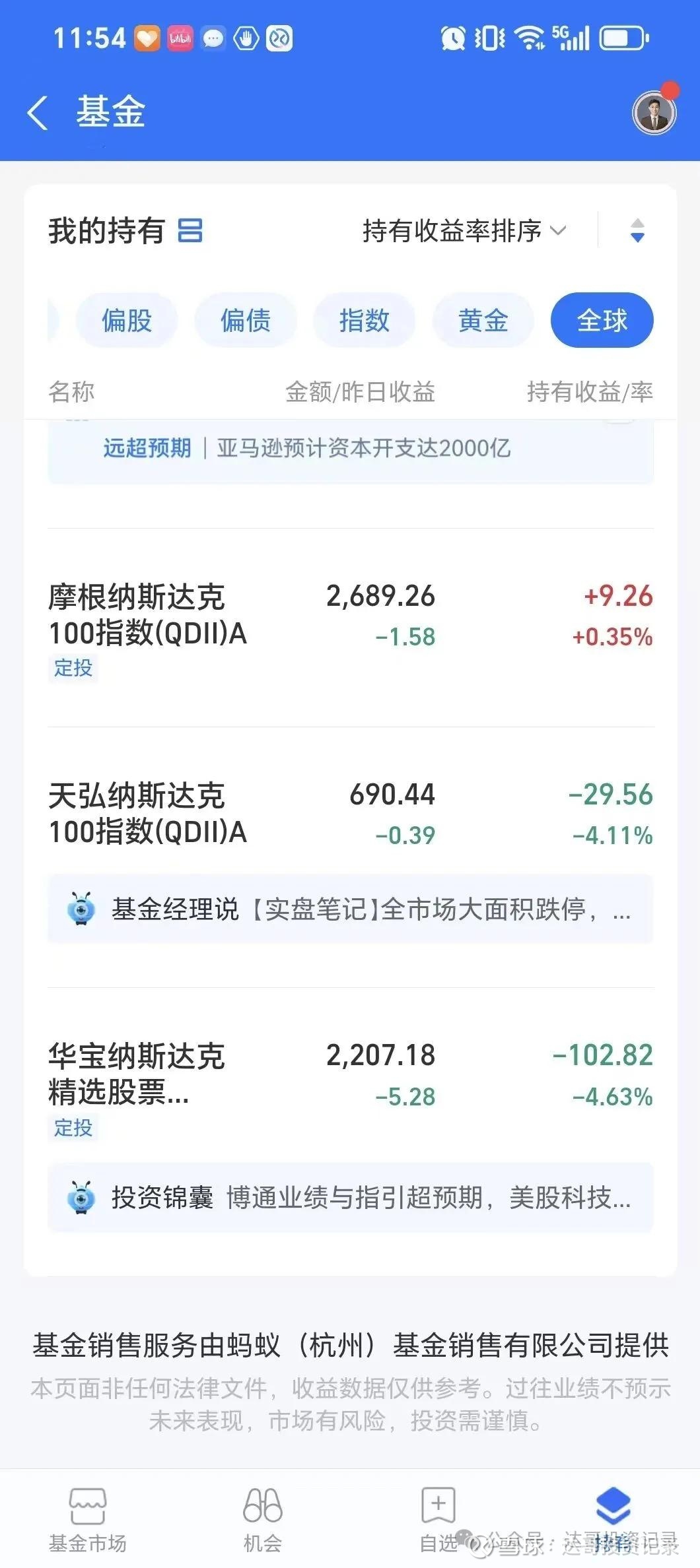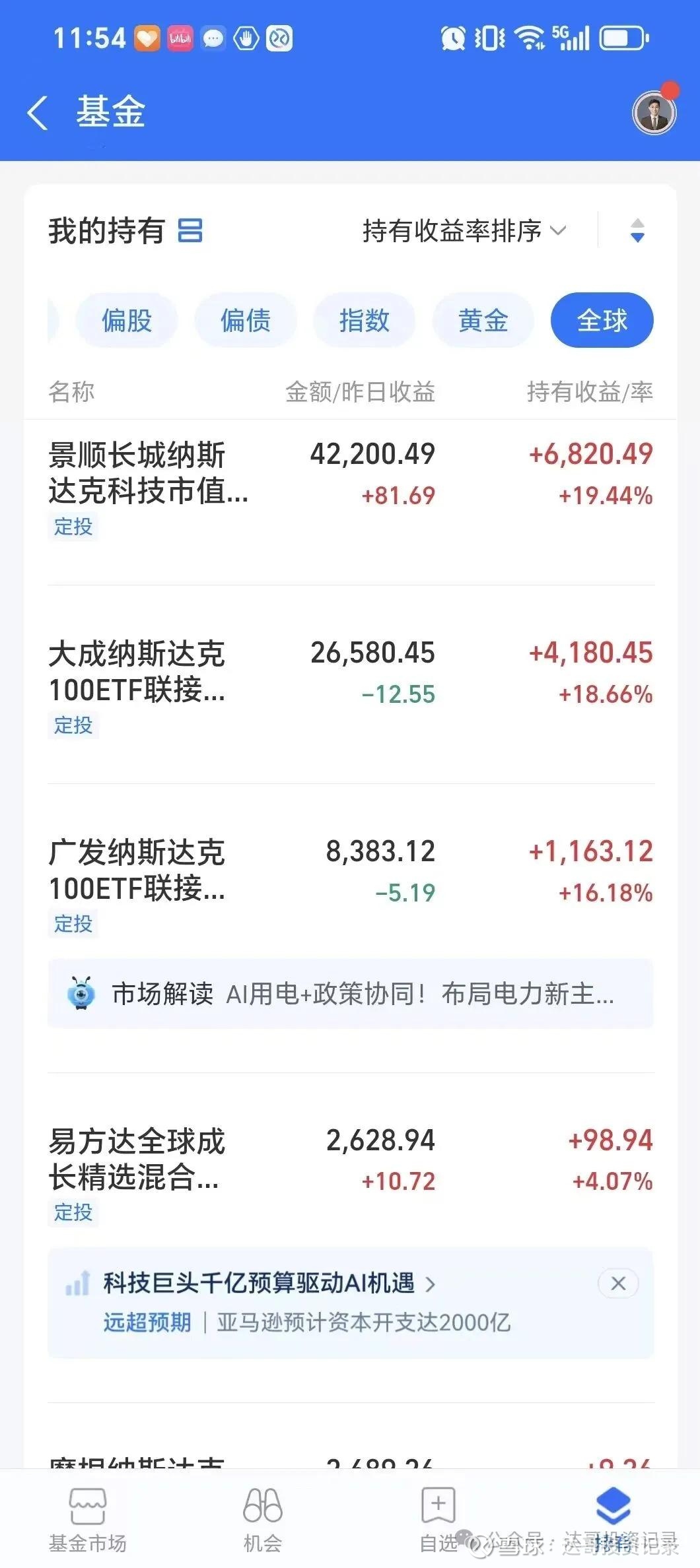 最新定投基金账户收益如下:
