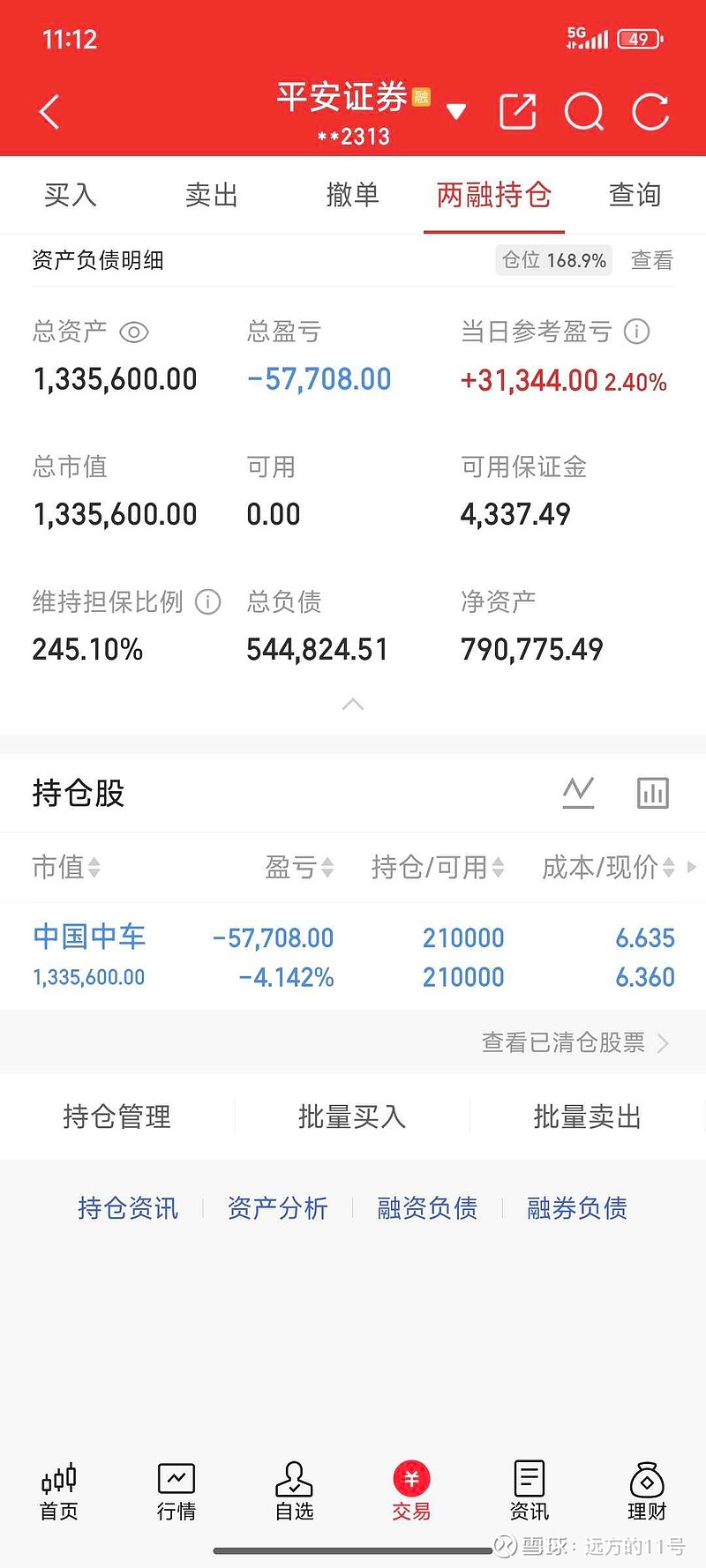 上午没空,下午一开盘账户又充值了1万元,还融资后再买入,可以买12手,6.34成交,继续满融。这个价位的
