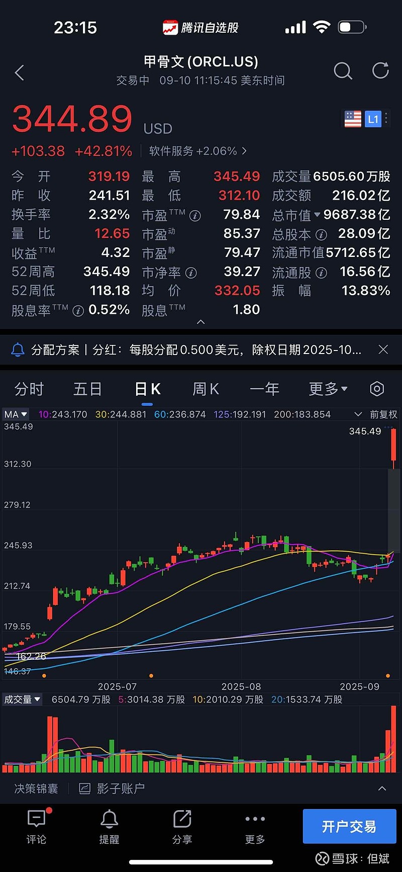 甲骨文在今日的交易中表现惊艳,此刻股价涨幅高达42.81%,令人惊叹。作为一家市值巨大的公司,这样的涨幅极为罕见,彰显出市场对其未来发展的强烈信心。此次股价飙升或许源于其云业务的迅猛扩张,以及与OpenAI等达成的重磅合作 ,让投资者看到了公司在AI领域的无限潜力……备注:本文只是一点投资感悟,不构成任何投资建议。投资有风险、须谨慎!