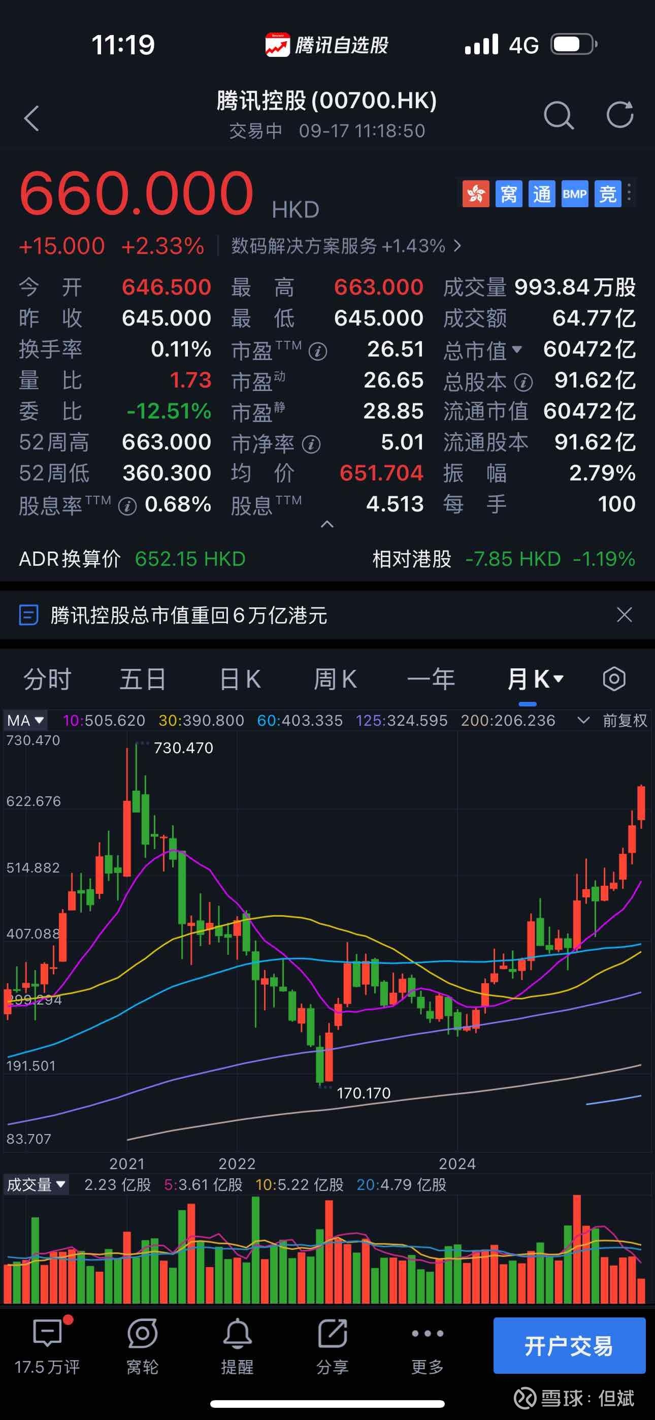 腾讯距离历史新高还有近11%,这几年国内互联网巨头距离全球巨头的差距是越来越大,需要奋力直追,而能创历史新高,非常有意义!