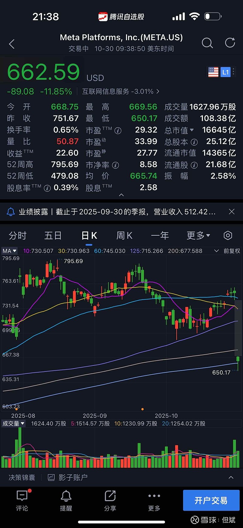 尽管剔除这笔一次性非现金所得税费用后,Meta的每股调整后盈利为7.25美元,高于市场分析师预期,但市场仍对公司的财务表现表示担忧。此外,Meta还上调了2026年的资本支出预期,预计支出增幅将显著超过2025年,这也引发了投资者对公司净利润能否保持增长的担忧。受这些因素影响,此刻暴跌11.85%。也许是“