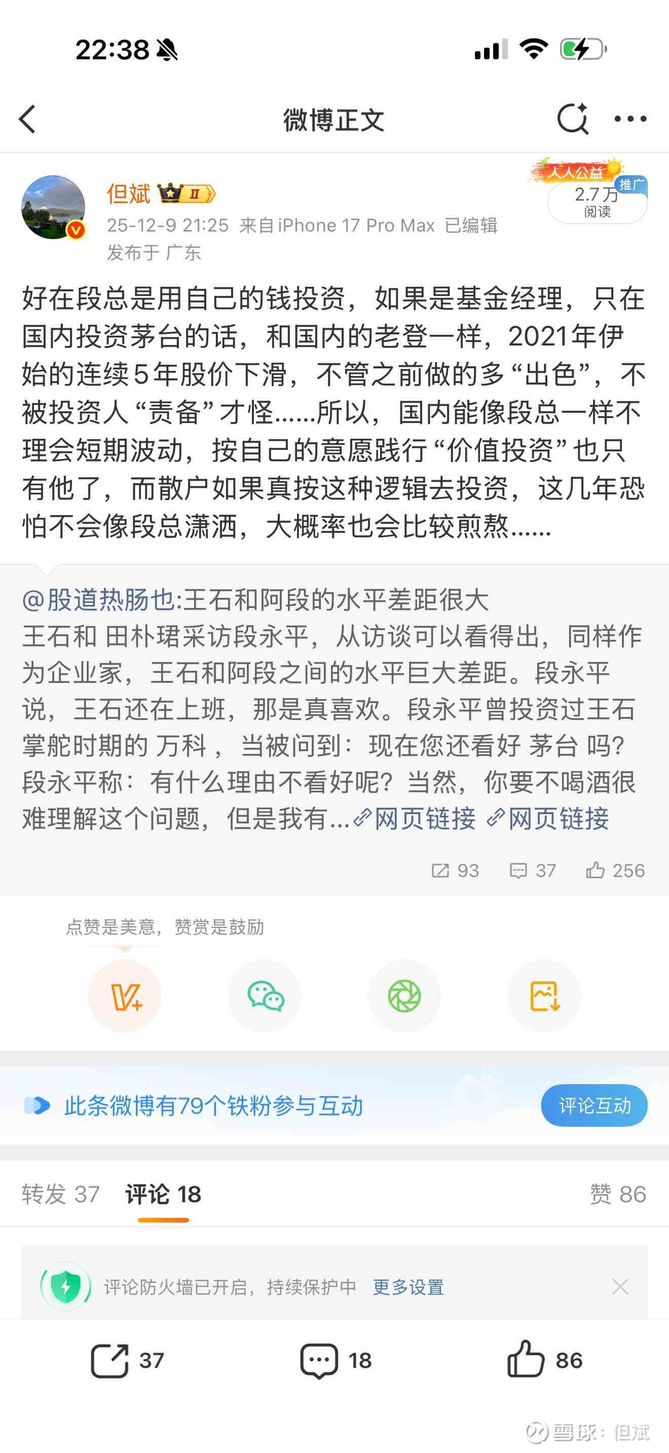 好在段总是用自己的钱投资,如果是基金经理,只在国内投资茅台的话,和国内的老登一样,2021年伊始的连续5年股价下滑,不管之前做的多“出色”,不被投资人“责备”才怪……所以,国内能像段总一样不理会短期波动,按自己的意愿践行“价值投资”也只有他了,而散户如果真按这种逻辑去投资,这几年恐怕不会像段总潇洒,大概率会比较煎熬……