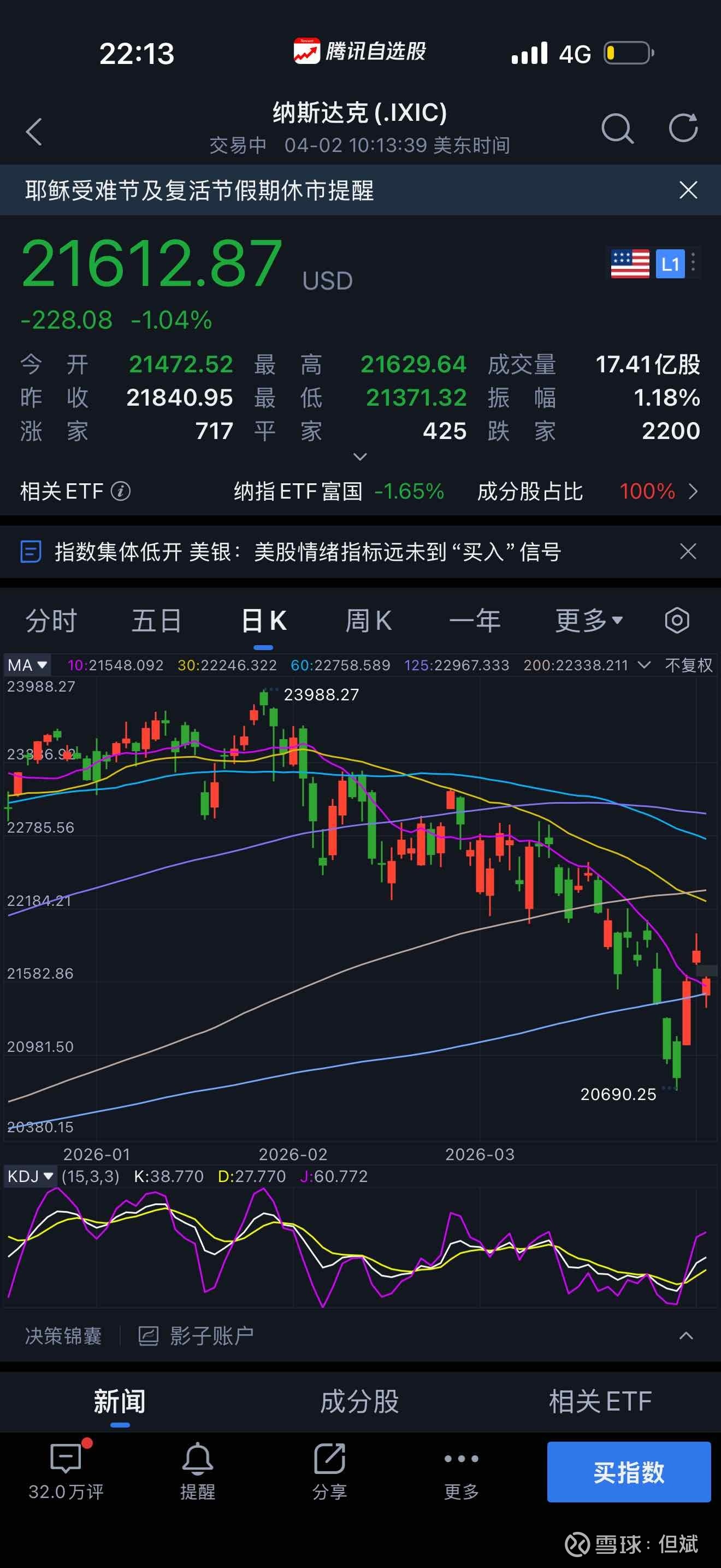 市场的底部,从来都是在恐慌中铸就的。如果纳指能在当前位置企稳,不再创新低,那么大概率就是本轮调整的底部,将重复去年4月的走势。对于长期投资者而言,短期的波动只是噪音,科技股的长期成长逻辑从未改变,在别人恐惧时贪婪,坚守优质资产,终将穿越周期,收获时间的玫瑰。