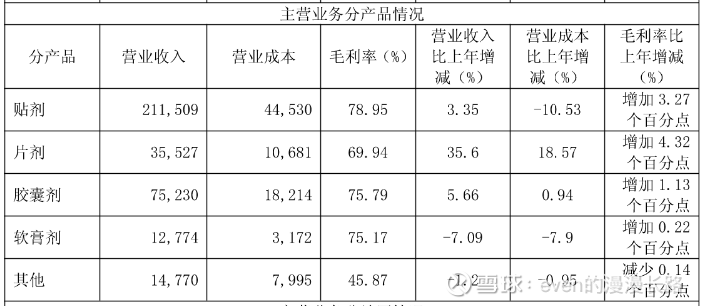 公司的主要产品通络祛痛膏市场占有率比较高,竞争格局我觉得可算是良(不算那么激烈,国内想要找不到竞品的产品或者有很强的护城河的产品很少)。公司毛利率不错,费用控制良好,资产负债表稳健,股东回报也不错。