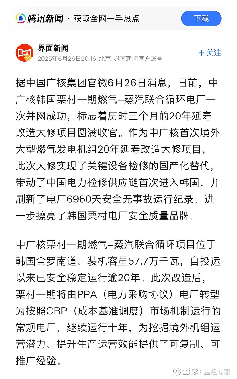 从其他地方看到,韩国栗村一期燃气电厂大修完成,得以延寿10年,但其从PPA电厂转变为按CBP市场机制运行的常规电厂,这个对项目发电量和经营业绩会有重大影响。