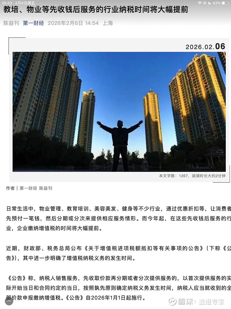 :《关于增值税进项税额抵扣等有关事项的公告》,其中进一步明确了增值税纳税义务的发生时间。这个对物业服务行业应该会有一定影响。