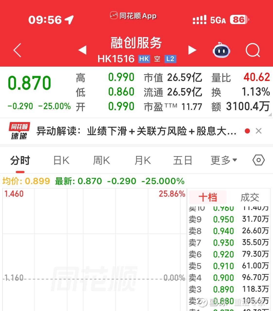 $融创服务(01516)$ :经营业绩尚在合理范围,只是派息1分钱有点侮辱人还好重仓在广核新,此货持股很少。最新持股平均成本约1.31,浮亏30%了。核心城市2.9亿平在管面积,账面40亿现金,经营模式简单透明,为啥市场只给不到30亿估值,问题可能还是大股东们的人品吧!要么就不分红,相对这个资产和业绩,分一分钱绝对是故意恶心人孙宏斌出来说二句吧!