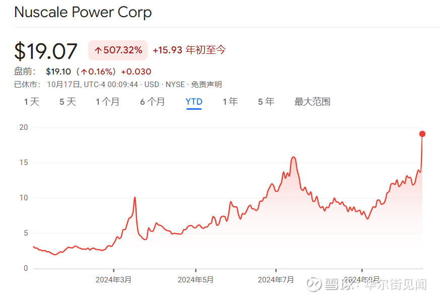 10月16日,亚马逊将投资超过5亿美元开发小型模块化核反应堆(SMR)的消息又给核能板块添了把火,核能初创公司Oklo、NuScale Power Corp股价暴涨超40%,后者股价更是创下新高,成为隔夜纽交所表现最好的两只股票。