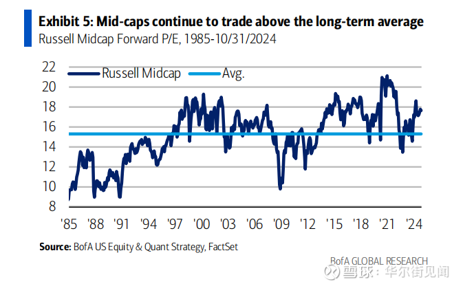 尽管小盘股的交易价格高于平均水平,但美银美林表示,当前的估值仍表明,小盘股的长期回报率高于大型股。