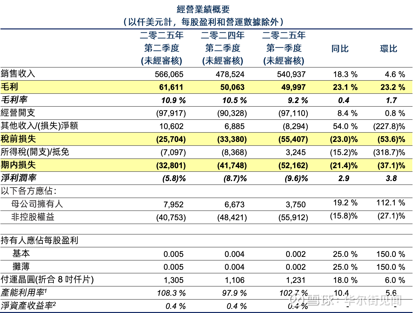 周四,华虹半导体发布二季度业绩,具体来看: