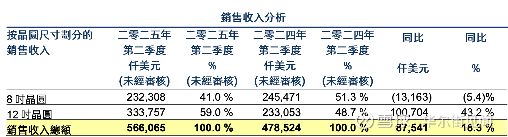 从收入结构看,12英寸晶圆业务成为增长主引擎,其中: