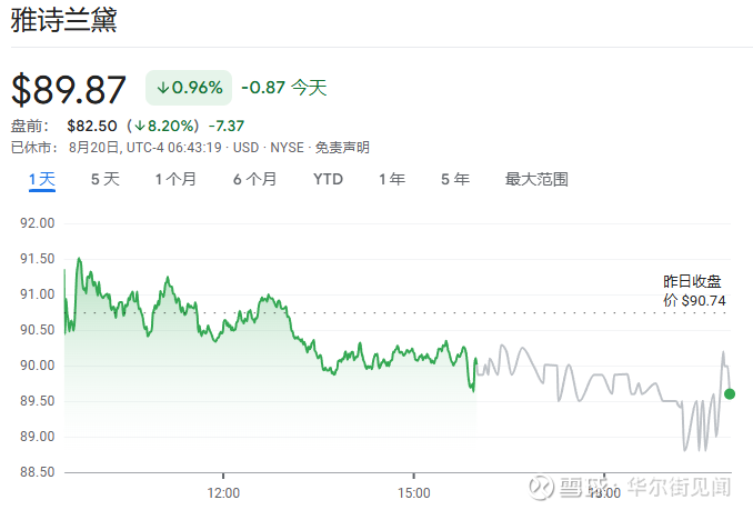 受此影响,雅诗兰黛股价在美股盘前交易中一度暴跌近15%。尽管公司股价今年迄今已上涨20%,跑赢标普500指数,但此次疲软的财年展望似乎抹去了部分涨幅。