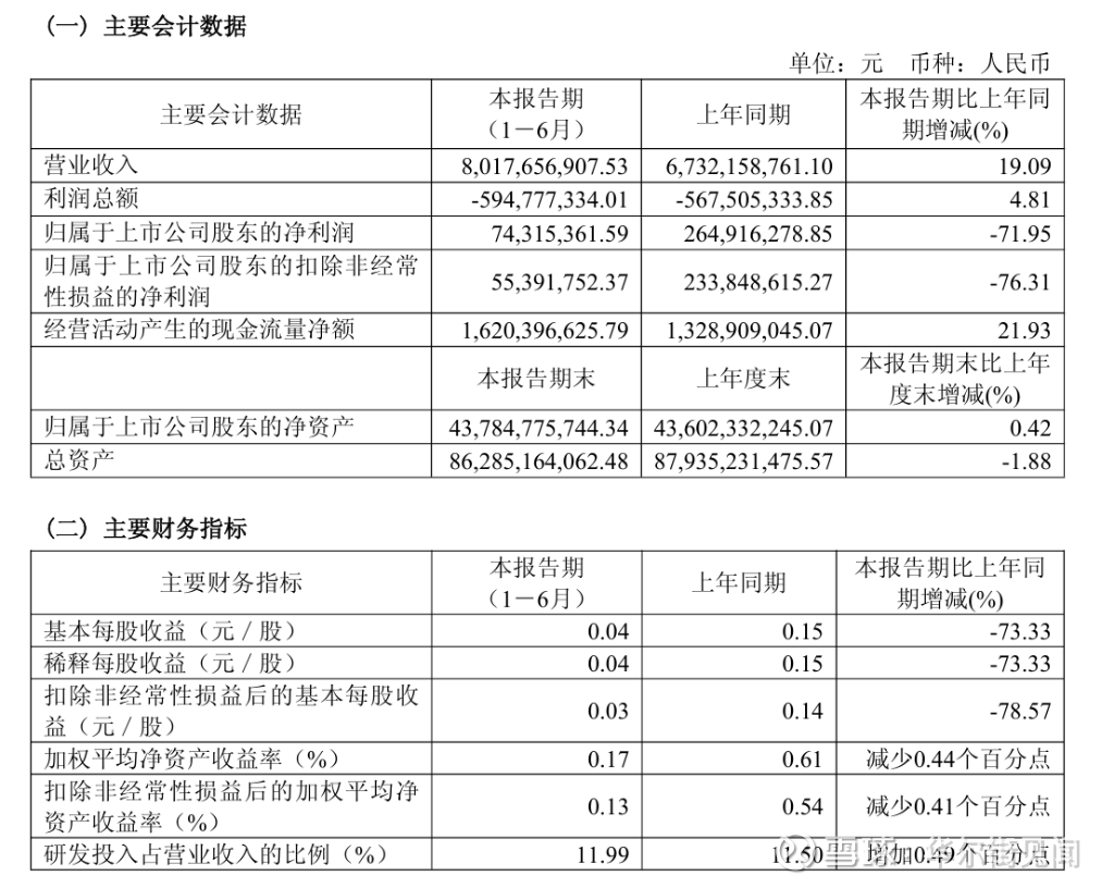 华虹半导体上半年实现营业收入80.18亿元,同比增长19.09%,主要得益于晶圆销售数量上升和华虹制造项目的量产贡献。