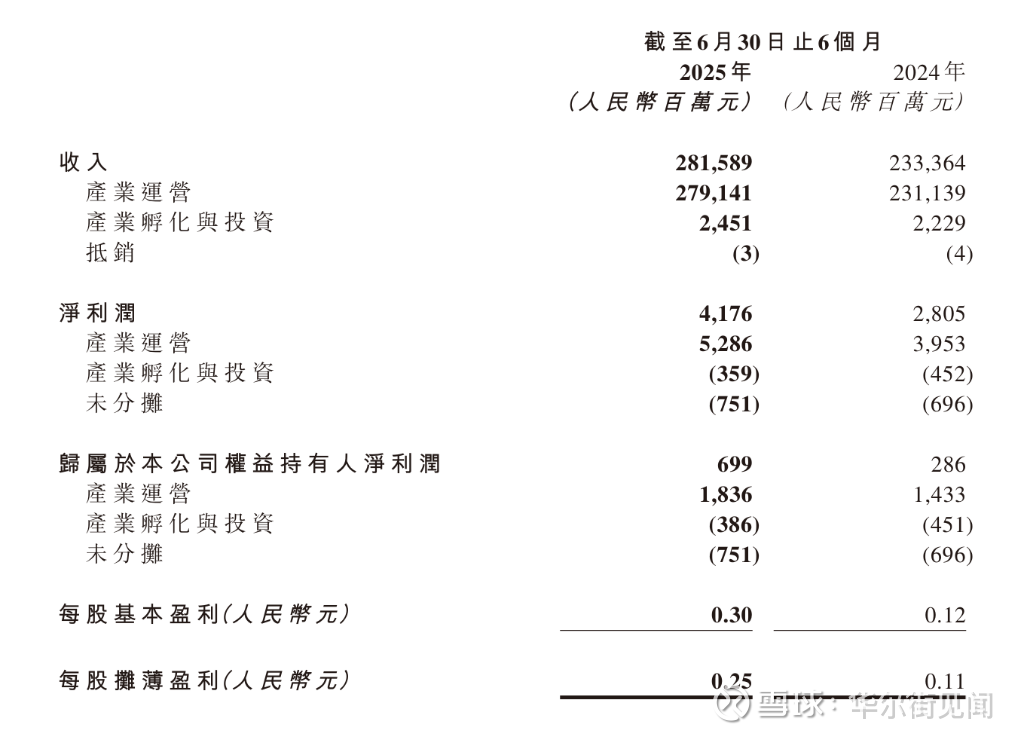 29日,联想控股公布截至2025年6月30日止6个月中期业绩公告: