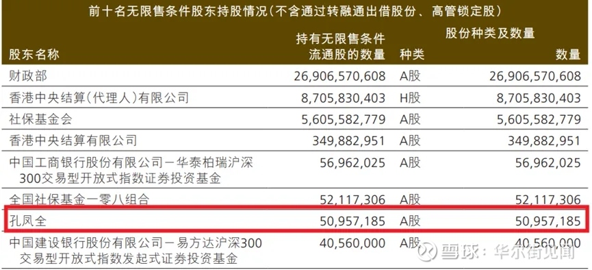 (如上图)上述报告期末,股东孔凤全通过信用证券账户持有中国人保1535.6万股A股,彼时他亦与中东主权基金阿布达比投资局、保险行业指数基金、主动权益策略的基金,一同身居前十大股东。