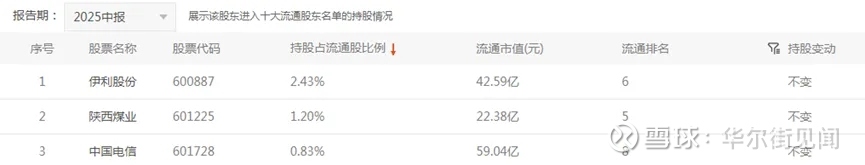 如果再与鸿鹄基金的多只重仓股对应,会发现逻辑呼应得非常清晰。伊利股份,对应消费必需品龙头;中国电信,是账单式现金机器;陕西煤业,则与保险账户里能源类公司的配置思路一致。