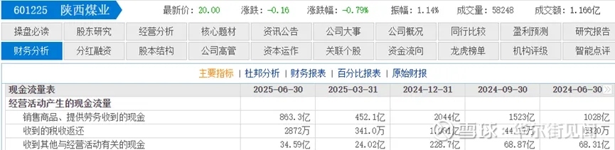 陕西煤业则像一座“现金瀑布”,2025年上半年吸金863亿元,在煤价景气周期里,单季度能轻松跨过千亿大关,把资源红利直接变成真金白银。