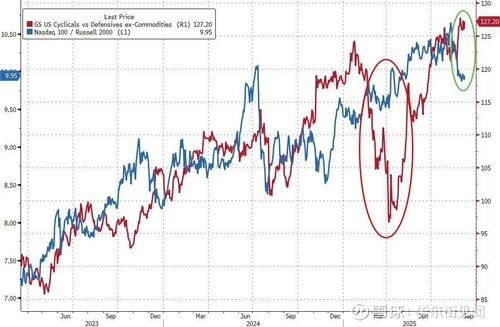 高盛称,仍在密切关注纳指期货仓位VS罗素期货仓位的差距。在上月CPI报告前,该差距处于历史高位+470亿美元,过去一周则下降了80亿美元,创下近两个月来最大单周跌幅。