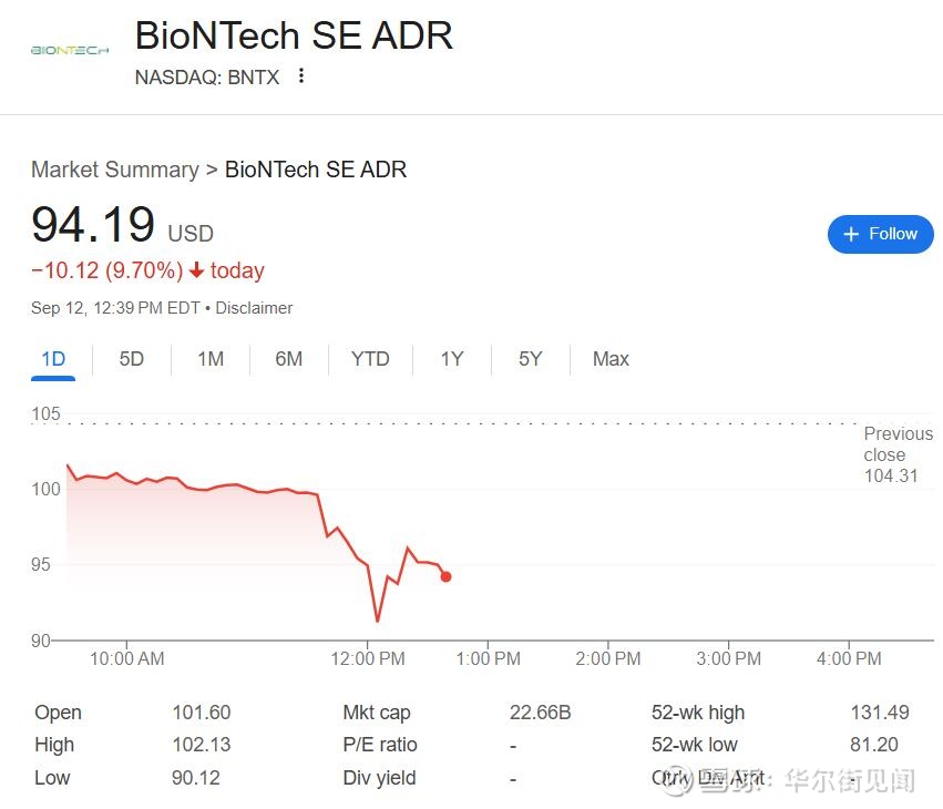 另一研发新冠疫苗的生物科技公司Novavax盘中跌超4%。BioNTech的新冠疫苗研发合作方——辉瑞跌幅相对较小,午盘跌超3%。