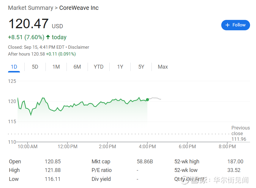 今年3月以来,CoreWeave从IPO价格40美元一度飙涨390%至187美元,随后股价大幅回落、曾跌至90美元下方。周一股价盘中涨逾8.4%,最终收涨7.6%,公司市值接近590亿美元。