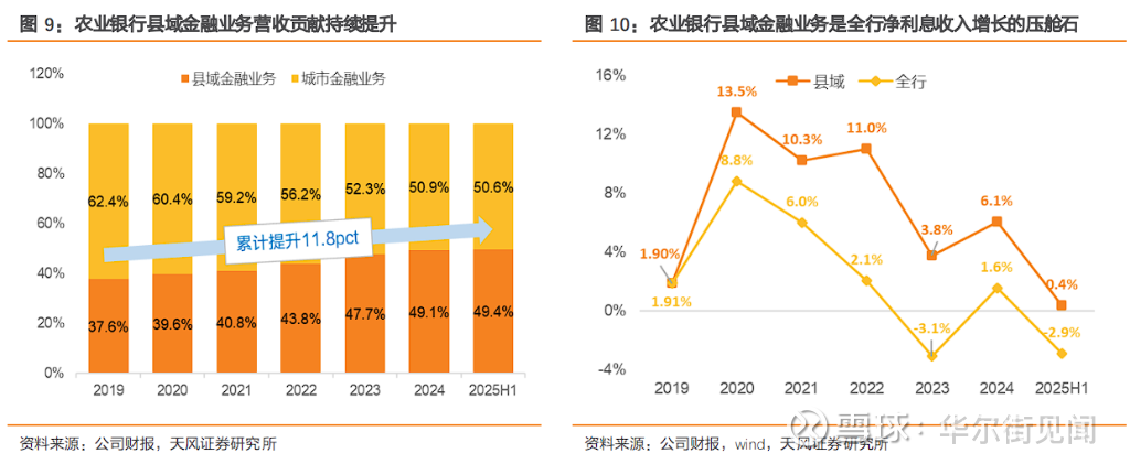 二是"特色业务发力"。县域金融业务对全行营收的贡献占比已较2019年提升11.8个百分点至49.4%,成为全行业绩增长的重要引擎。