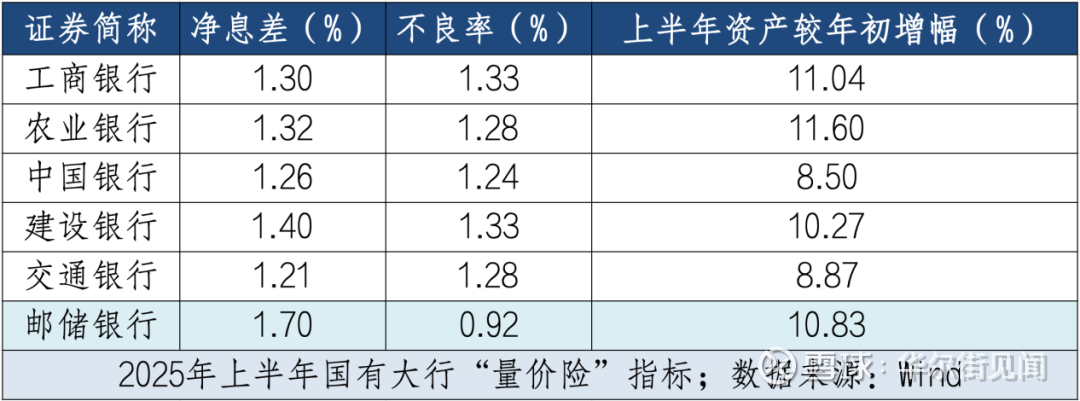 上半年,邮储银行净息差为1.7%、不良率低至0.92%、资产增幅达10.83%,三项指标均为国有大行领先水平。
