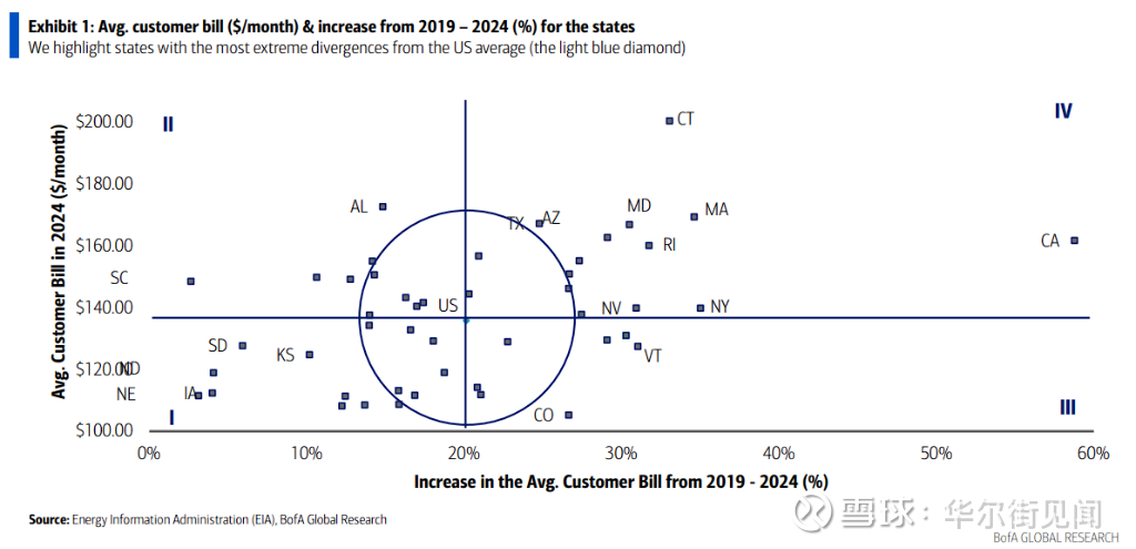 9月28日,据追风交易台消息,美银美林在最新的研究报告中称,以覆盖13个州的PJM电网为例,其电力容量价格在几年内飙升,直接导致区域内用户的平均账单上涨了18%至25%。尽管公用事业费率受到监管,但许多成本,尤其是电力和容量价格,会直接转嫁给消费者。