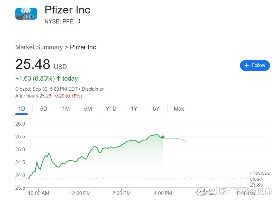 特朗普宣布达成协议后,辉瑞股价周二盘中进一步走高,尾盘涨幅曾扩大到7%以上,刷新日高时涨近7.5%,收涨6.8%。这反映出,投资者对协议帮助辉瑞规避更严厉的定价政策和关税威胁表示欢迎。